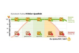 Gleichbleibend hohe Produkt-Qualität in frischem Öl, direkt nach dem Aufheizen; bei längerer Standzeit selbst bis zum nächsten Öl-Wechsel.