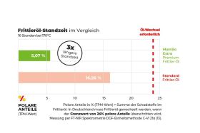 Gleichbleibend hohe Produkt-Qualität in frischem Öl, direkt nach dem Aufheizen; bei längerer Standzeit selbst bis zum nächsten Öl-Wechsel.